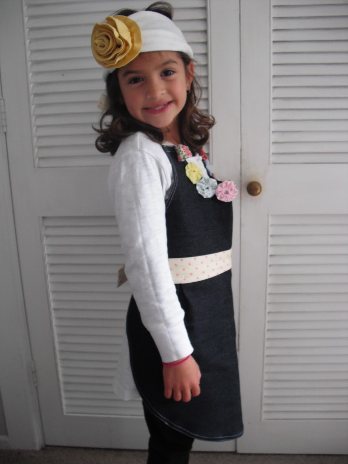 Here's one excited party-goer modelling the gift I whipped up - a rib headband with yellow rib flower, and a handy-dandy apron for baking with Mum.  Complete with yo-yos for crafty style.